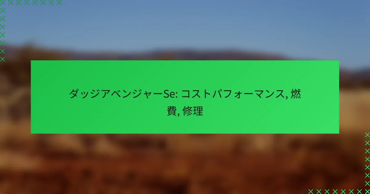 ダッジアベンジャーSeを購入する際は、コストパフォーマンス、燃費、修理の面を十分に考慮することが重要です。これらの要素は、長期的な所有コストや運転体験に大きな影響を与えます。
