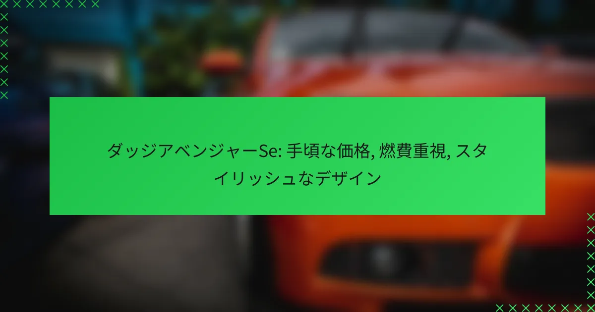 ダッジアベンジャーSeは、手頃な価格で燃費を重視したスタイリッシュなデザインのセダンです。特に都市部での利用に適したコンパクトなサイズと、快適な乗り心地を提供します。