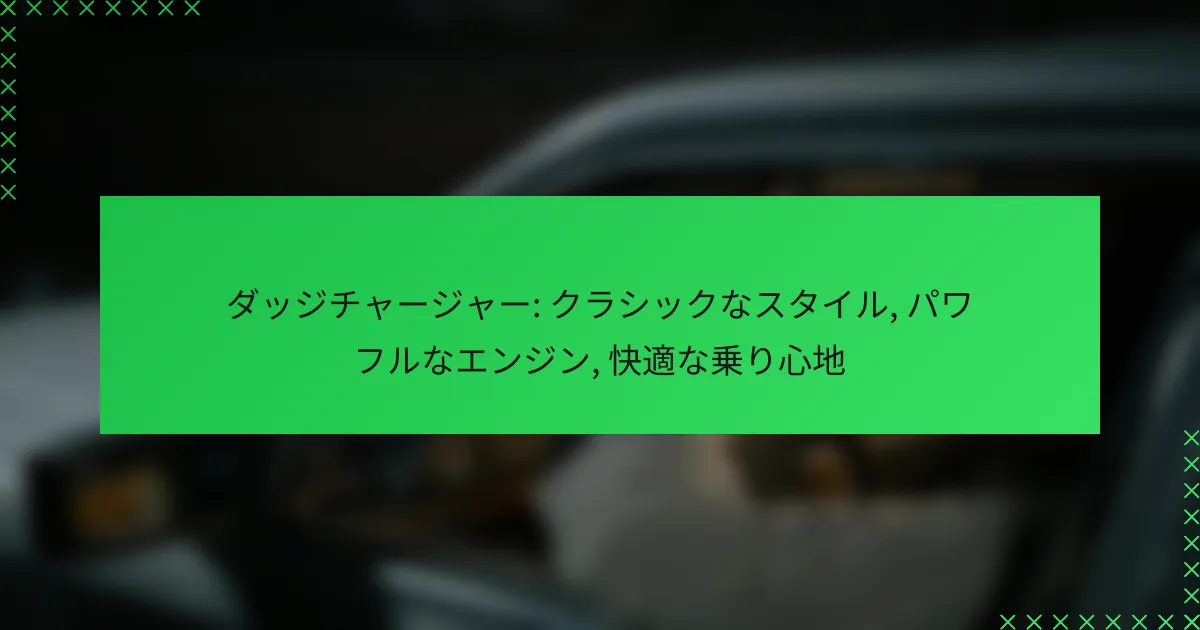 ダッジチャージャーは、クラシックなスタイルとパワフルなエンジンを兼ね備えたスポーツセダンです。快適な乗り心地を提供しつつ、最新のテクノロジーや安全機能も充実しています。