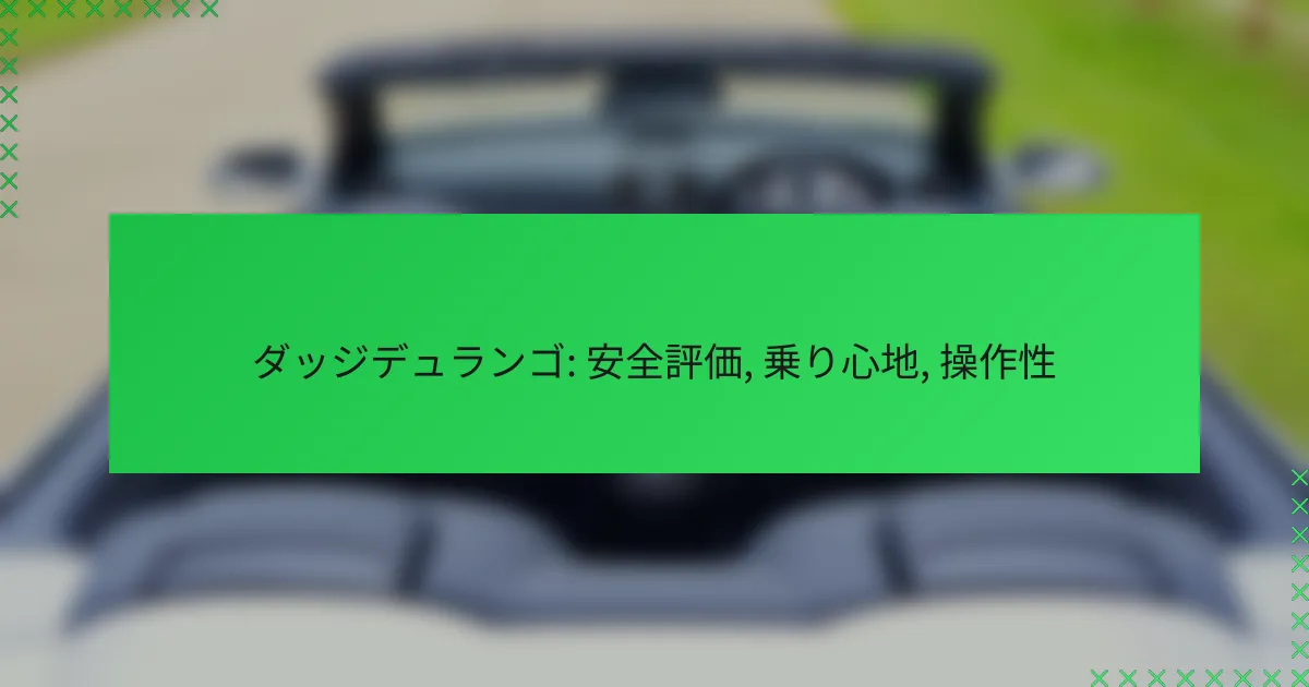 ダッジデュランゴは、安全評価、乗り心地、操作性の面で優れた性能を発揮するSUVです。安全評価は事故時の乗員保護を示し、乗り心地は長距離ドライブでも快適さを提供します。また、操作性においては安定したハンドリングとドライバーのフィードバックが重要なポイントとなっています。
