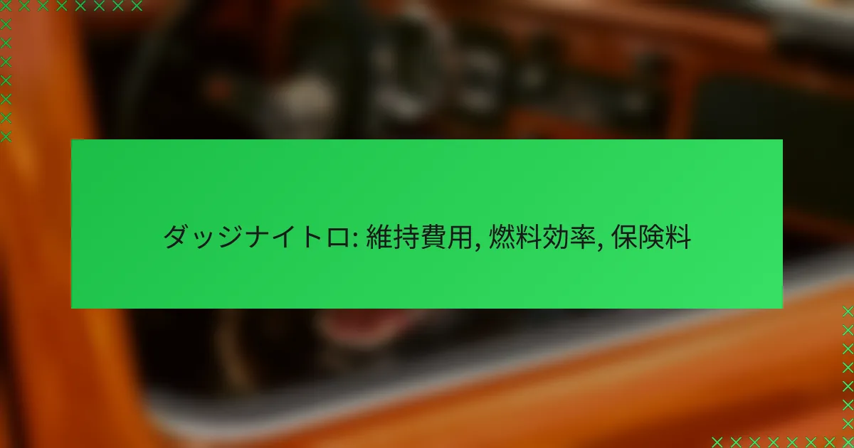 ダッジナイトロの維持費用を抑えるためには、メンテナンスの最適化、燃費の改善、保険の見直しが重要です。これらのポイントを意識することで、長期的なコストを削減できます。