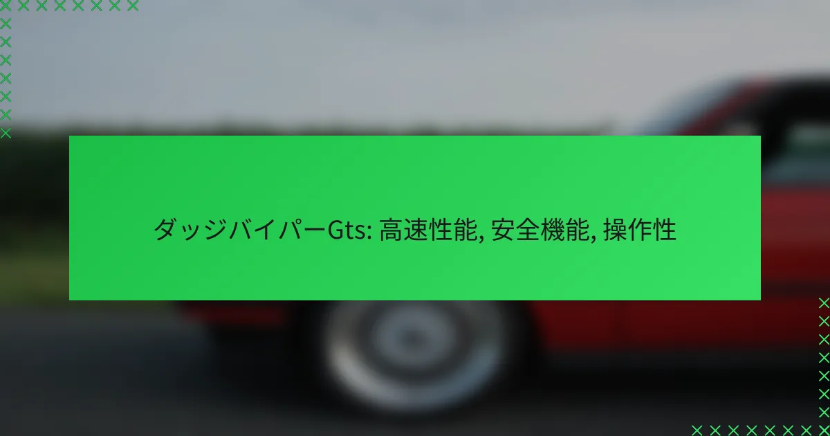ダッジバイパーGTSを購入する際は、高速性能、安全機能、操作性を重視することが重要です。これらの要素は、車の全体的な運転体験に大きな影響を与えます。
